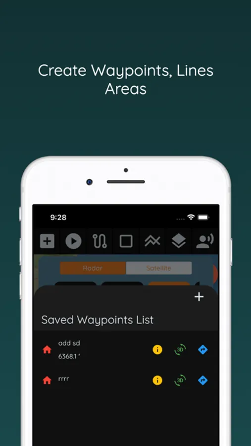 Users can create waypoint on map by tapping map and create any waypoints instantly. Photo, marker icon and color selection is available on save or updating waypoint. Waypoints can be shared with groups.