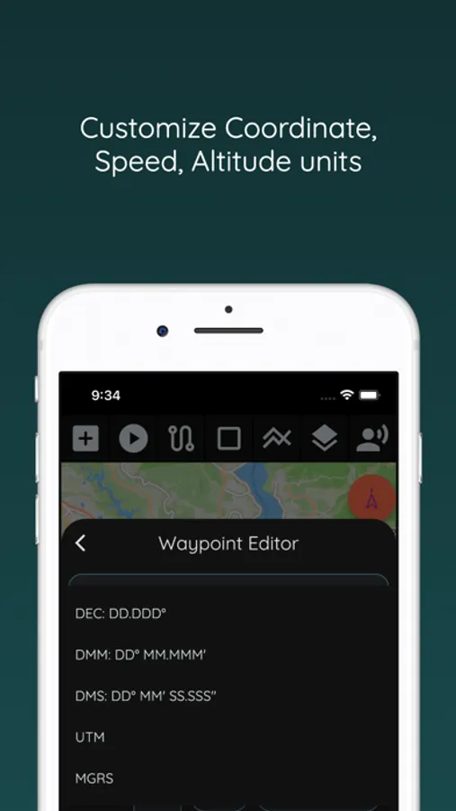 Users can select coordinate, speed, altitude and speed units according your needs. All coordinates and other data will be show on selected format.