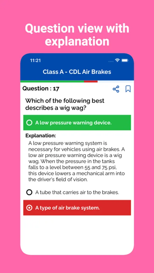 Our app includes a variety of practice questions for the Driver's license exam for Commercial Vehicles. These questions are based on the official handbook of different states.