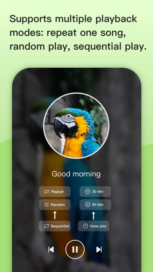 Multiple playback modes: single loop, random loop, sequence loop.