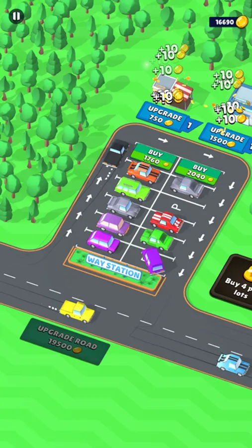 Increase the number of parks, widen the road and earn more money from the parking lot!