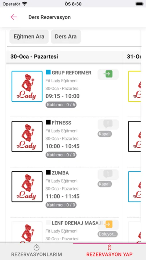 Ders programları ile derslere rezervasyon yapabilir, eğitmen profillerine göz atabilirsiniz.