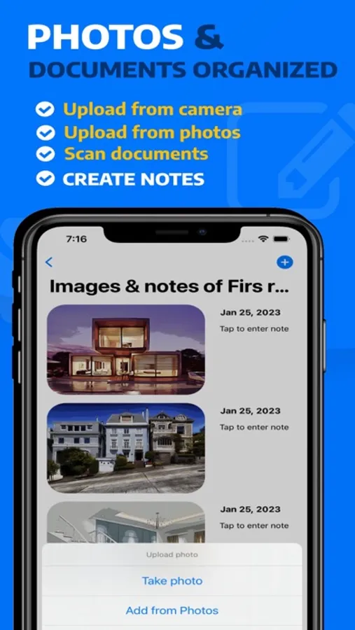 - Scan documents, upload images from photo library or camera