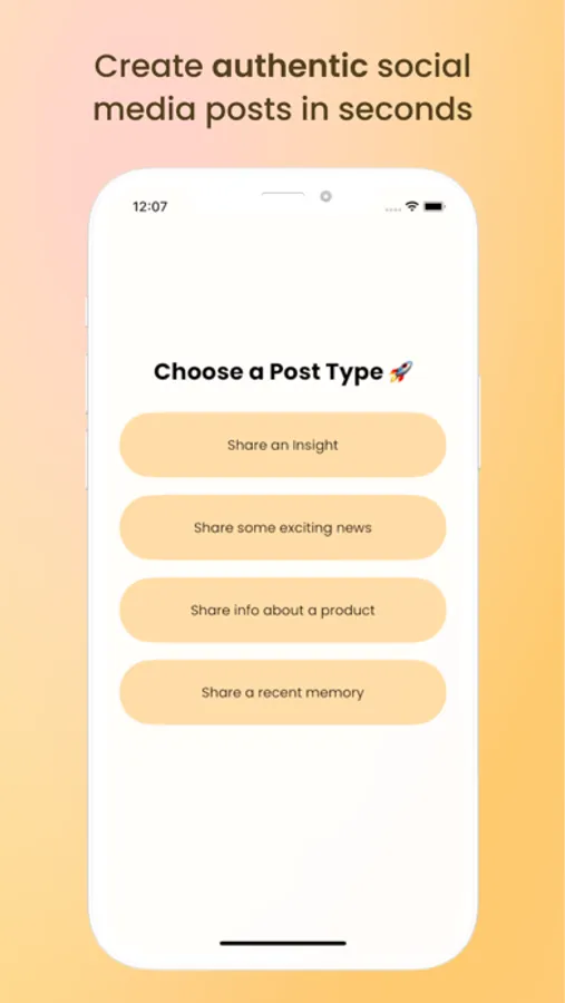 • Choose to share: An insight, Exciting news, A company update, A recent memory, or A product you're selling