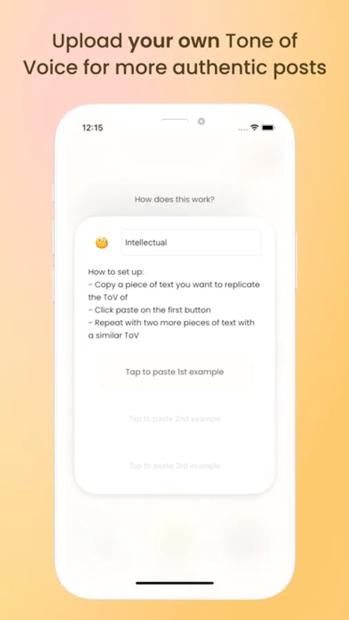• Upload your own tone of voice - use examples from your own writing or from people's content you like