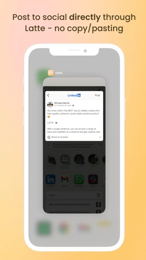 Latte is an AI social media manager in your pocket. Generate social posts authentic to you in seconds.