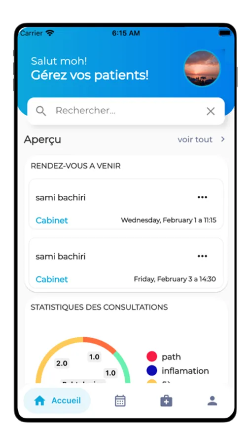 En vue de cette évolution, l'entreprise vous procure une application mobile d'E-Santé qui est un système numérique de gestion de services médicaux.