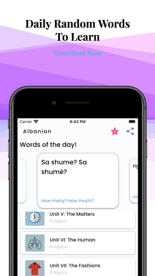 Our app lets you learn Albanian language from basics to advance level. There is a large database collection of useful Albanian words and phrases available offline in the app. You can can go through different topics and learn essential Albanian words. Also you can learn random useful words from the app updates on daily basis.