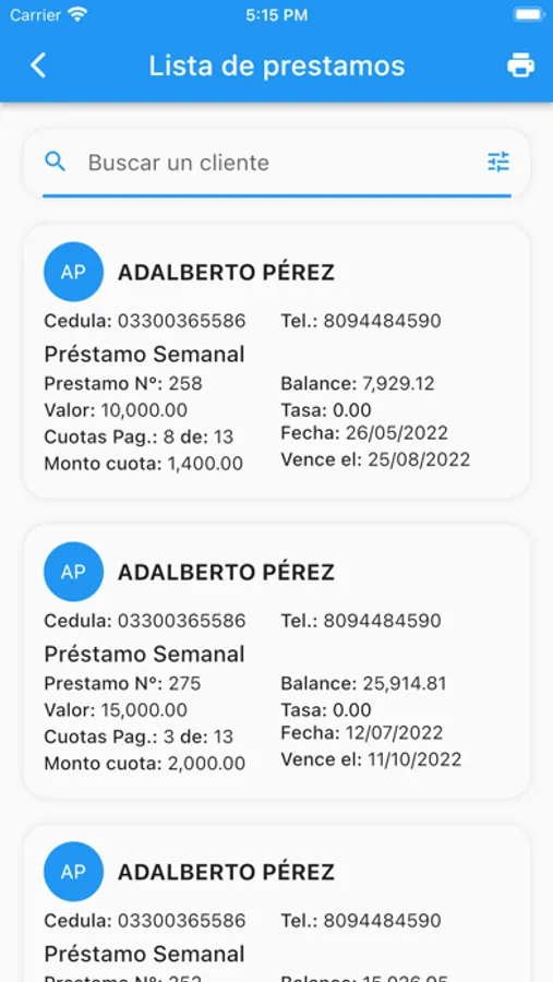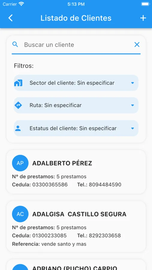 - Filtro por estatus de Préstamo, Sector, Modalidad entre otros