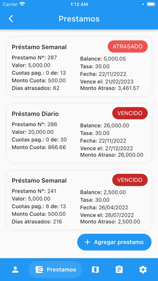 - Filtro de prestamos por Estatus para saber los clientes visitados y no visitados