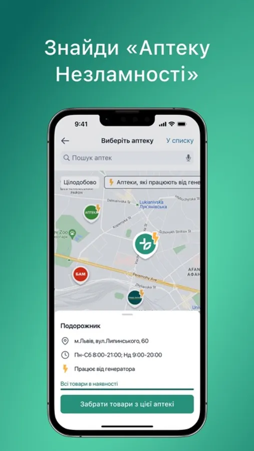 Знайти «Аптеку Незламності». Ці аптеки працюють незважаючи на відключення світла. Також в них можна підзарядити свої гаджети;