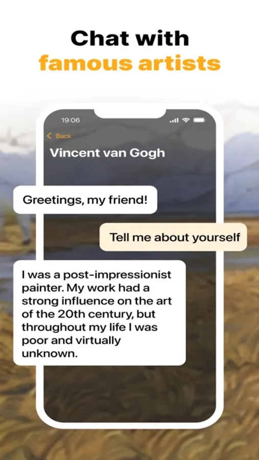 Vicente allows you to chat with some of the most famous painters of all time and ask them to draw anything you want. Get personal advice and insights on how to create stunning pieces of art.