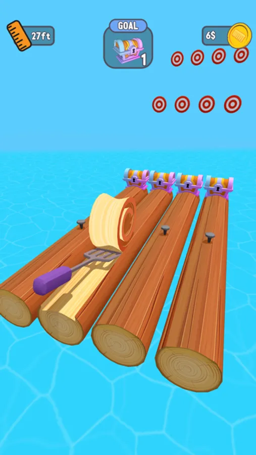 Merge your carving tools and use them to carve wood. Form spirals and use them to destroy obstacles!