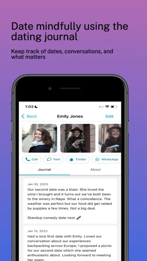 Timbur is a dating journal and relationship manager (DRM) that syncs your contacts across dating apps, helps you focus on the matches you care about, and helps you date mindfully by journaling.