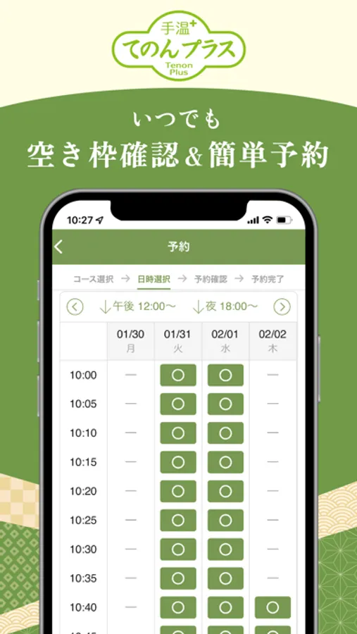いつでもお手元のスマートフォンからご希望のお時間帯のチェック・ご予約が可能です。