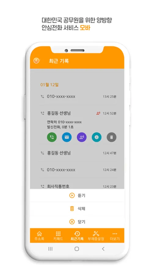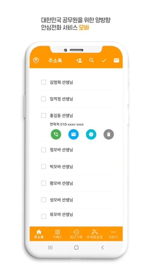 학부모/민원인과의 통화를 통해 내 휴대전화 번호가 공개되어 발생하는 사건 사고와 이에 따르는 사회적인 문제의 원인 해결을 위한 서비스입니다.
