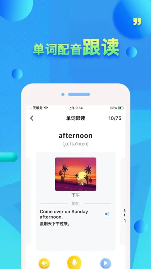 为课后单词表中每个单词做配有图片或视频,让学生更容易理解记忆。为每个单词配一个例句及句子的发音。增加配音功能,让学生的发音与标准发音有对比,方便纠正发音。