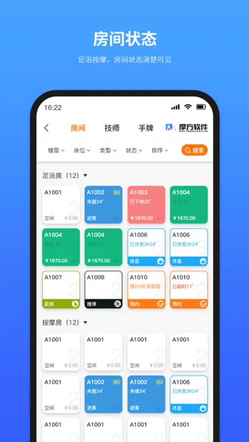 摩方APP是雲聚客科技有限公司开发的足浴洗浴SAAS软件,通过多年积累的行业经验和最新的前沿技术,为大中型足浴洗浴门店提供一体化的管理运营体系。通过智能化的管理,降低门店的管理的人力成本、提高技师员工的工作效率。结合多元化的用户数据及门店运营数据,通过分析和聚合,建立起强大的会员用户体系,门店管理体系,提高足疗客人的服务体验,提高门店的营业额。同时,摩方软件支持制定多元化的营销方案,为门店获取更多的客户资源。
