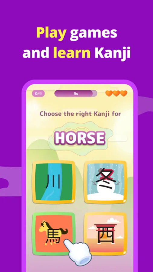 - Match the right Kanji with its meaning, so simple and easy to play!