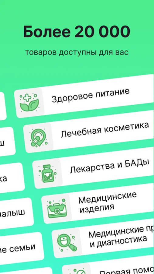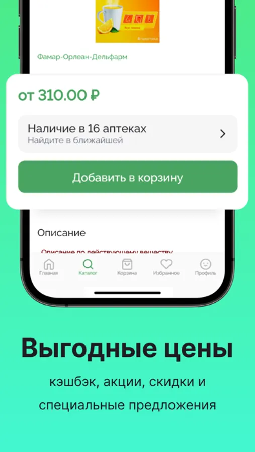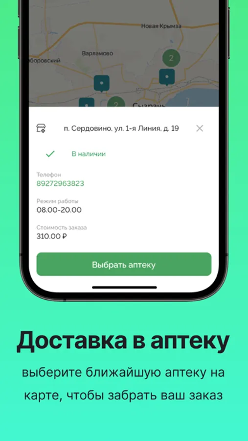 • Просмотр адресов и рабочего времени ближайших аптек.