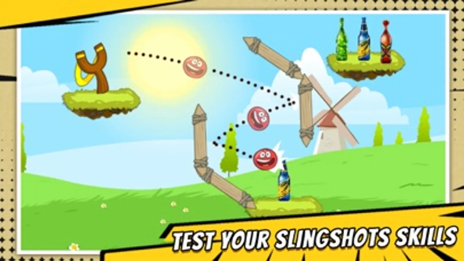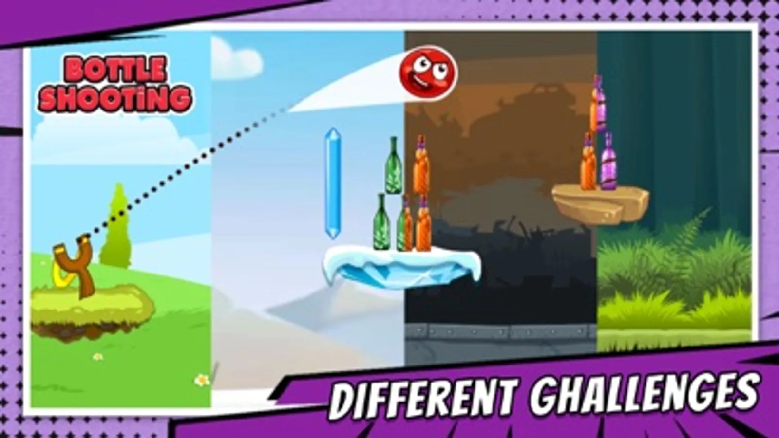 Red Ball:Bottle Shooting with great fun using catapult and test your slingshot skills.