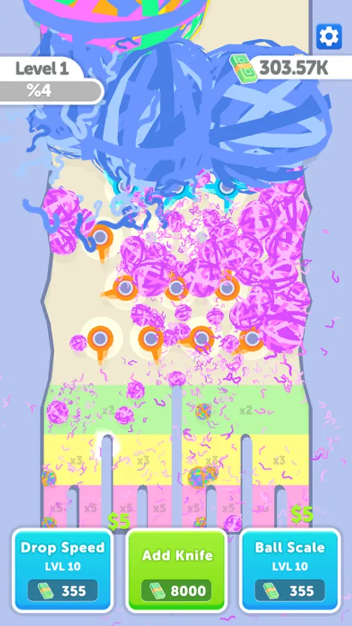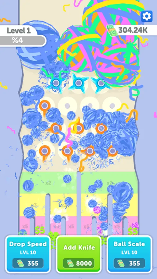 - The smaller the balls, the more money you make, and you can upgrade your blades to make the slicing even better.