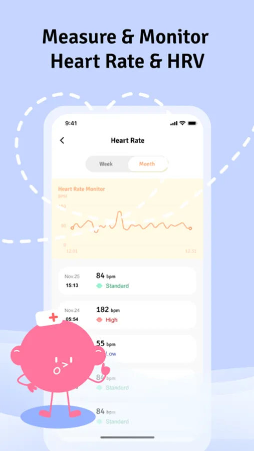 -Visualize daily heart rate, blood oxygen, and blood pressure with graphs