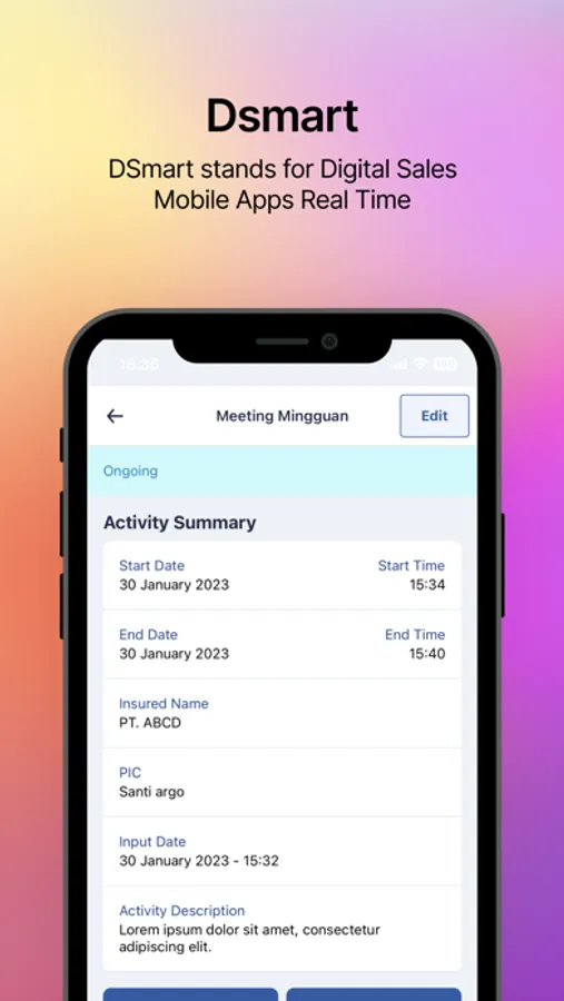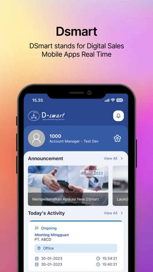 DSmart stands for Digital Sales Mobile Apps Real Time. Say goodbye to your conventional ways in managing your agenda. Continuing the Mobile Office journey, this apps was developed to support Account Managers in planning and scheduling their agenda in a more simple way.