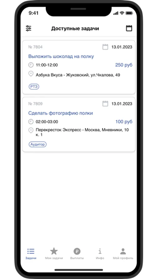 Установите приложение и пройдите простую регистрацию без анкет и резюме, и сразу получите доступ к списку текущих заданий от крупнейших компаний России