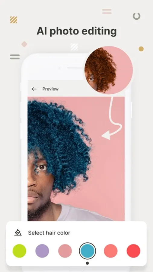 Hair Color Changer has an exclusive focus on coloring your hair. The app has a huge variety of hair colors, also allowing you to create more colorful stripes, ideal for those who want to color locks in different colors.