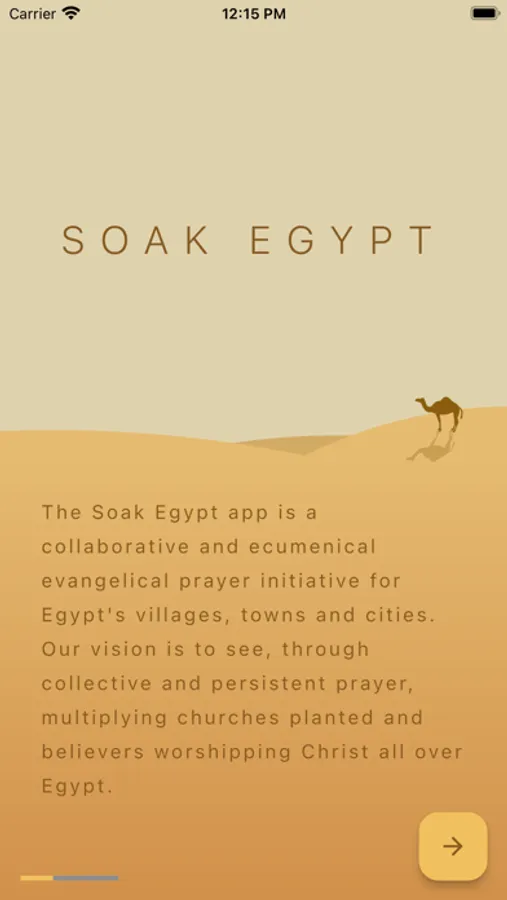 The Soak Initiative app is a collaborative and ecumenical evangelical prayer initiative for Egypt's villages, towns and cities. Our vision is to see, through collective and persistent prayer, multiplying churches planted and believers worshipping Christ all over Egypt.