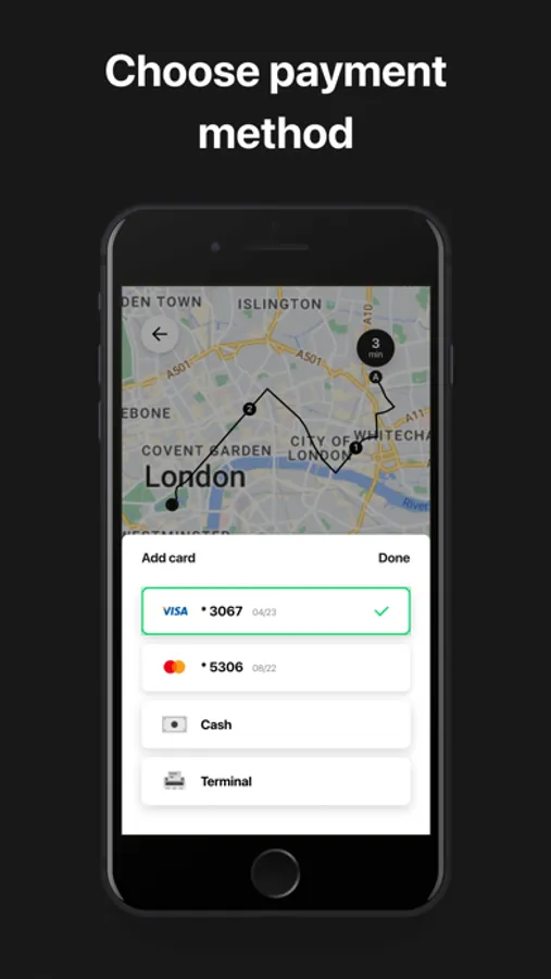 Choose your destination and a friend going in the same direction will pick you up for half the price of a taxi.