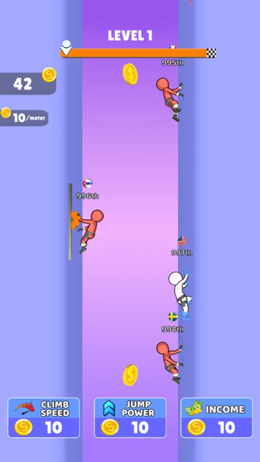 So what are you waiting for? Start your climb to the top! With its fast-paced action, challenging gameplay, and incremental upgrades, you're in for an experience like no other. Get ready to race, climb, and conquer!