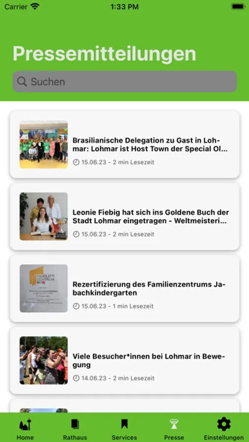 Das Modul „Presse - Neues aus Lohmar“ hält auf dem Laufenden und zeigt immer die aktuellen Pressemitteilungen im komfortablen Format.