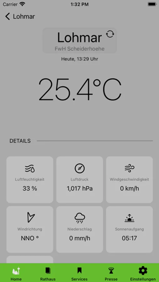Das aktuelle Wetter in Lohmar wird für drei Standorte angezeigt. Die Wetteranzeige empfängt die Live-Daten von drei in Lohmar ansässigen Wettersensoren.