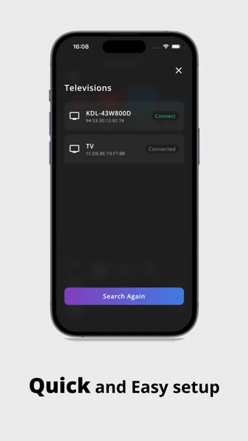 Connect your phone/tablet to the same WiFi network as your TV device for the application to work.
