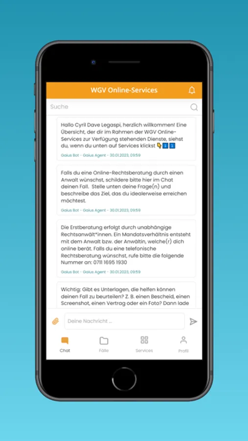 Gilt für alle Verträge mit Abschluss nach dem 01.04.2010 mit mindestens dem Baustein “Privat” oder “Verkehr”. Du hast die Möglichkeit dich in die Online-Services einzuloggen, sobald du deine Versicherungsscheinnummer unmittelbar online oder auf dem Postweg von der WGV erhalten hast. Manche Dienste sind nur im OPTIMAL-Tarif zugänglich und nicht im BASIS-Tarif. Keine Dienste sind verfügbar für Kunden von himmelblau.de. Die Gaius Legal GmbH erbringt selbst keine Rechtsberatung. Sie ist vielmehr Betreiber der Online-Services, Web- und mobilen Apps und stellt lediglich die technische Infrastruktur dieser Plattformen sowie den Assistenzservice durch ihre Redaktion und Kundendienstmitarbeiter zur Verfügung. Rechtsberatung erfolgt ausschließlich durch unabhängige, im jeweiligen Land der Nutzung zugelassene, Anwältinnen in eigenem Namen und in eigener Verantwortung, an welche der Betreiber die Nutzer über die Plattformen verbindet.
