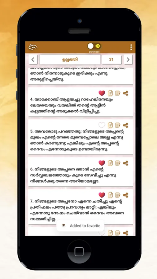 In this Bible app offline, you can share Malayalam bible verses on social media or can bookmark/share a bible verse or the whole chapter with notes for future reference. This Bible app uses the KJV version. Malayalam Bible KJV consists of more features such as follows: