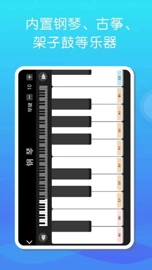 钢琴和古筝入门必备工具软件,完全模拟真实按键和发音,是您在钢琴学习路上不可缺少的一个好工具。