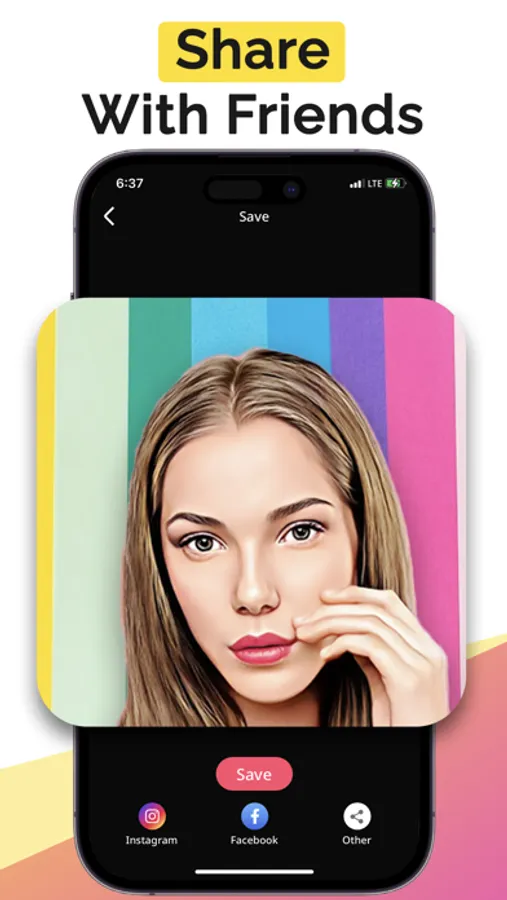- Share your Cartoon Avatar to Social media (Instagram, Facebook, etc)