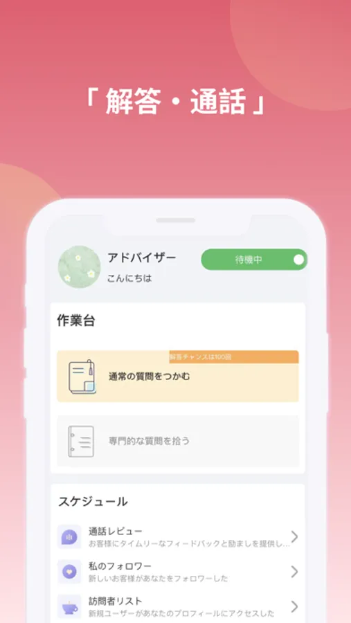 このアプリは、アドバイザー向けの仕事用アプリです。