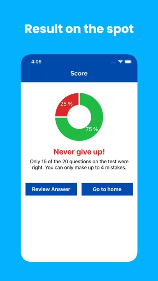 - Result on-the-spot with score