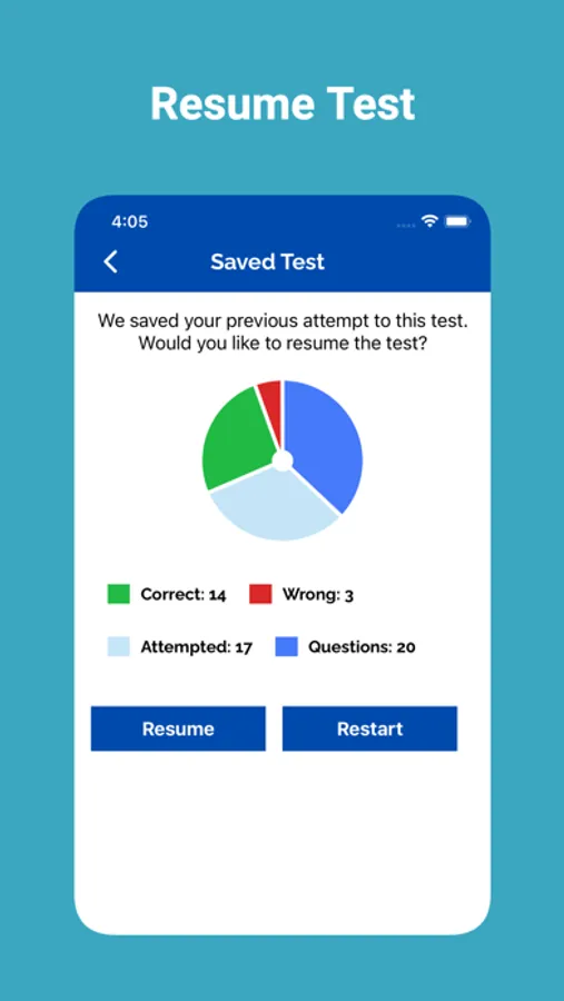 App tracks the users completed practice tests. The app tracks their progress, allowing them to identify areas for improvement and track their overall progress.