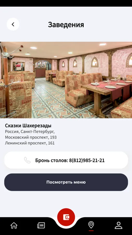 Приложение для просмотра меню заведения "Сказки Шахерезады" и бронирования столиков.