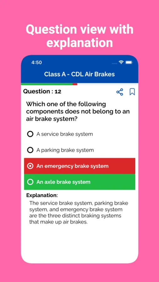 Our app includes a variety of practice questions for the Driver's license exam for Commercial Vehicles. These questions are based on the official handbook of different states.