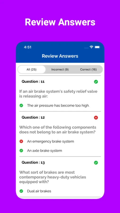 The app includes a variety of practice questions for the CDL exam. These questions are based on the North Carolina CDL handbook Users can track their progress and identify areas where they need more practice, allowing them to focus their studying on the areas where they need the most improvement.