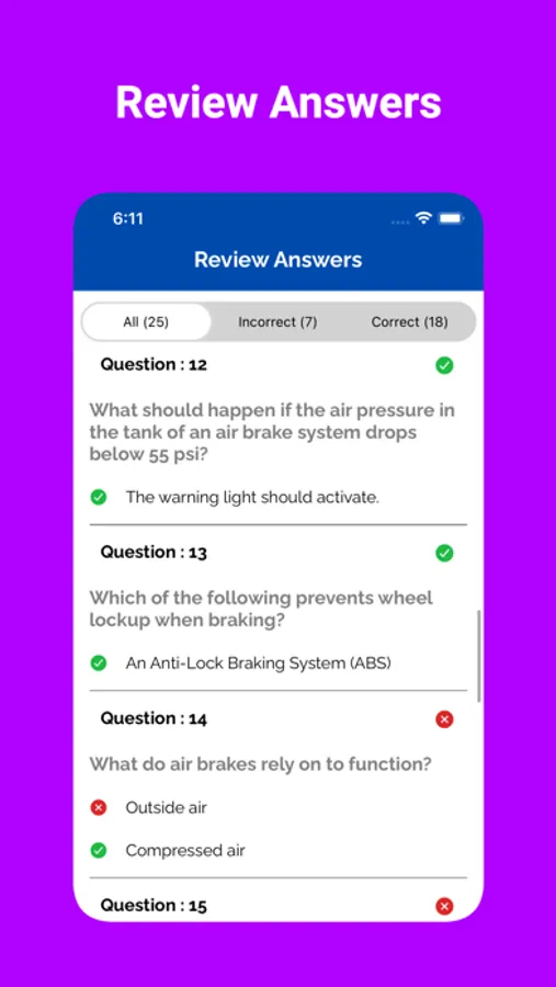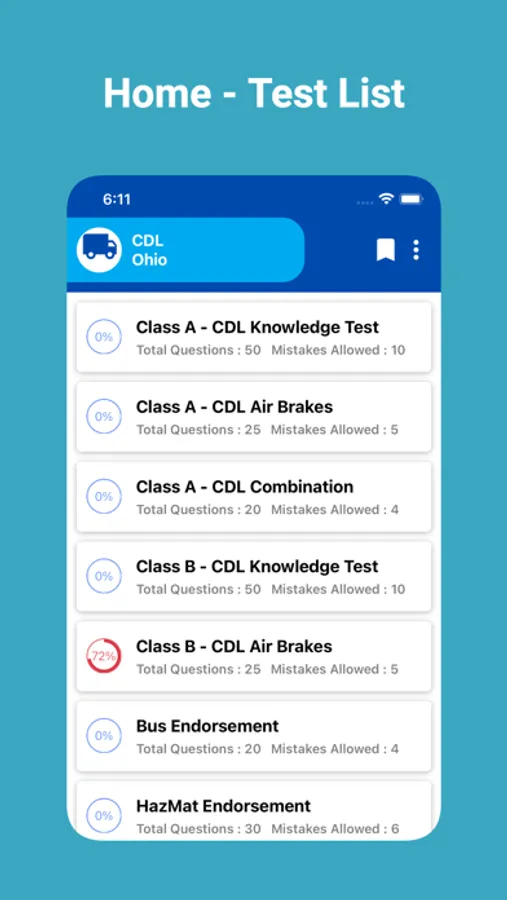 The app includes a variety of practice questions for the CDL exam. These questions are based on the Ohio CDL handbook Users can track their progress and identify areas where they need more practice, allowing them to focus their studying on the areas where they need the most improvement.