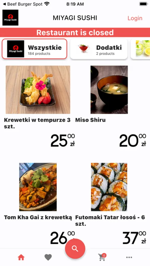Aplikacja do zamawiania jedzenia w MIYAGI SUSHI