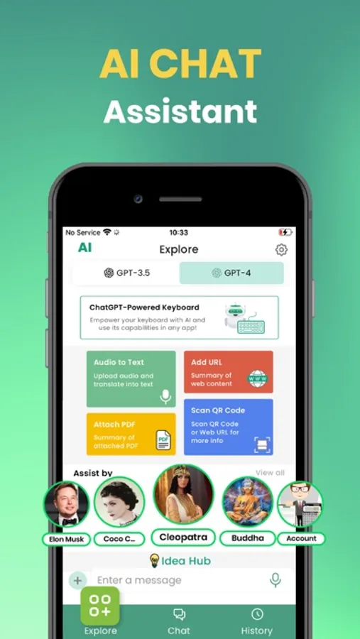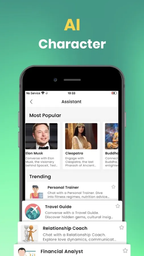 - AI Characters: Journey through history by conversing with figures like Edison, Buddha, Cleopatra, and contemporary icons like Elon Musk.