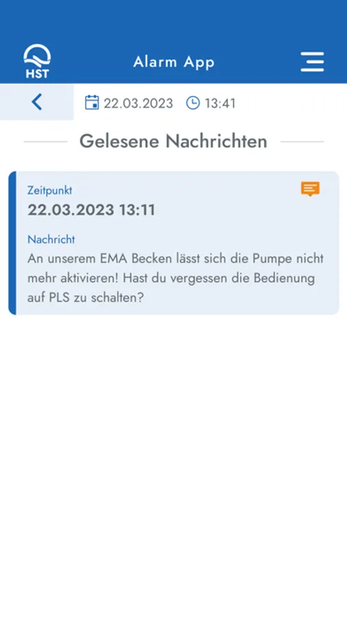 Die Alarm APP dient zum Empfang kritischer Alarme aus den Prozessleitsystemen SCADA.web und SCADA V10 der HST Systemtechnik GmbH. Die App bietet dem Bereitschaftsdienst eine zuverlässige, sichere und insbesondere bedienerfreundliche Lösung für die tägliche Arbeit in der Rufbereitschaft.